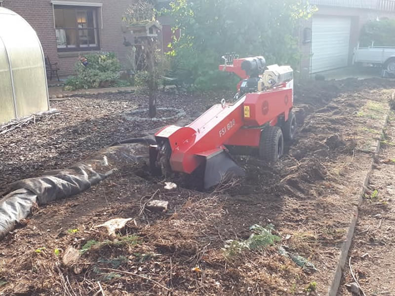 Die Stubben und Wurzeln werden gefräst um die Fläche optimal für die Neugestaltung vorzubereiten. Inkl. Häckseln und Abfahren??